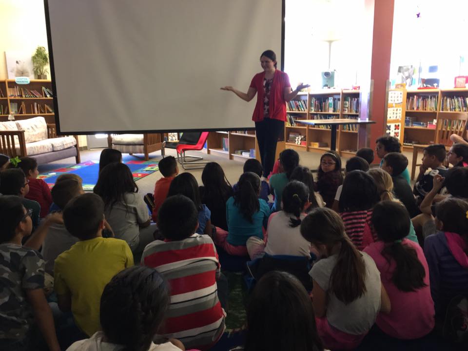 With all of these school visits, I’ve discovered that having help from the librarian is a huge factor in how the visit goes. They know all of the kids and teachers, how the computers work, and what setup would work best. So I just want to give a shout out to all the school librarians out there. You do a great job at opening up the world of reading to students and I’m personally grateful for all the work you do.