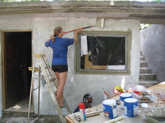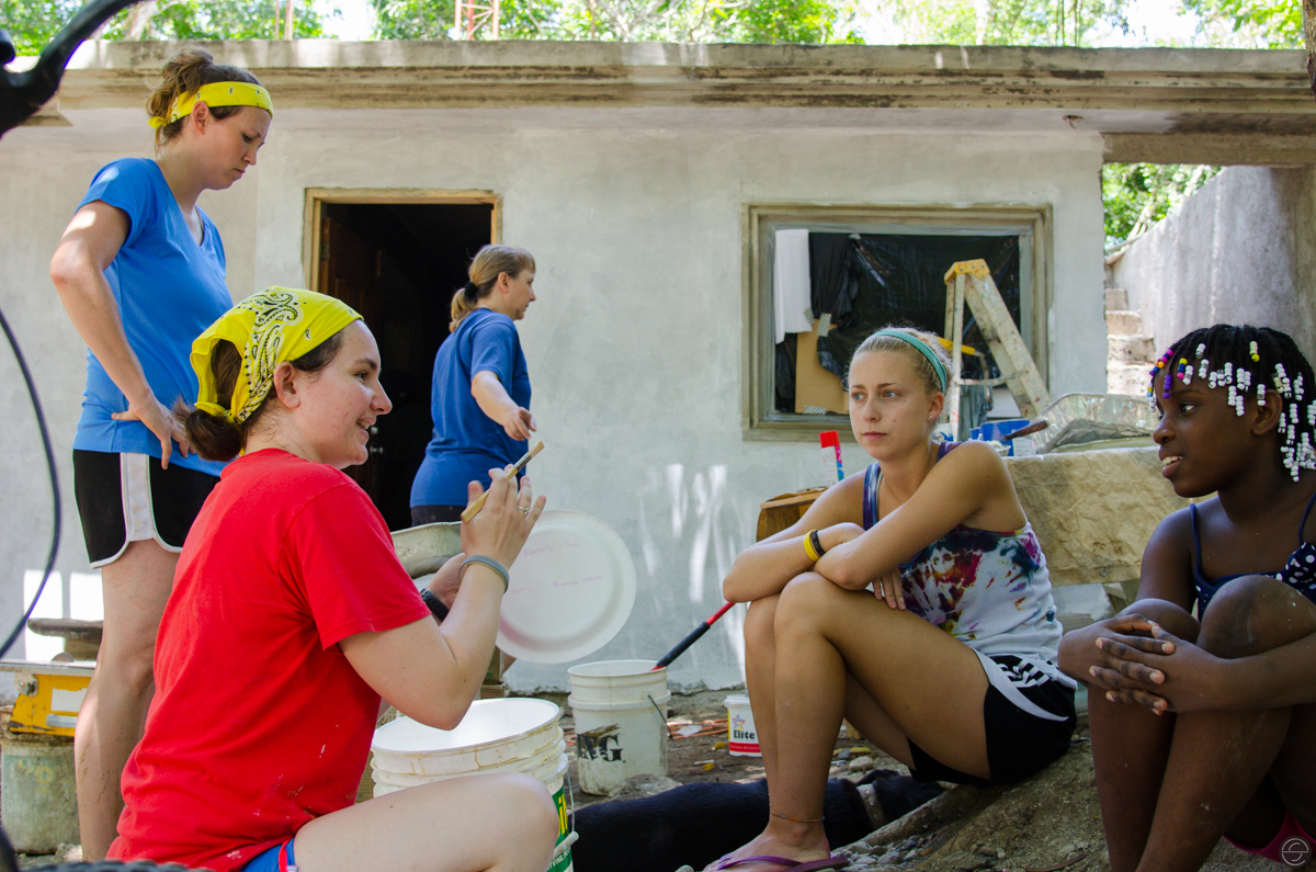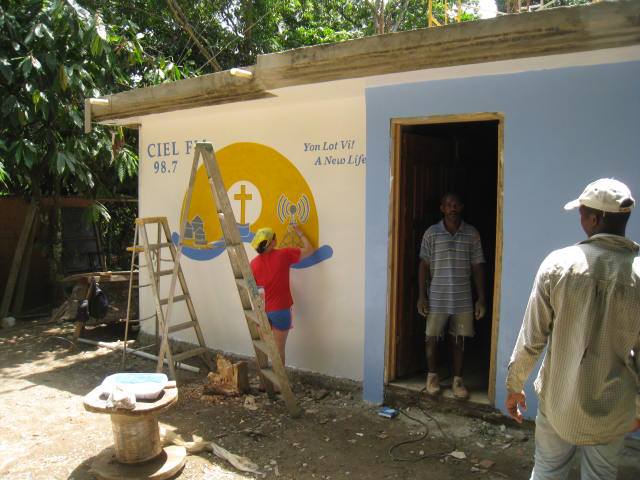 This day taught me over and over how important relationship is, not only with other people, but with God. We’ll just start at the beginning. Tuesday morning I began working on my project (the logo of the radio station) or really just priming the walls for the logo. But as I began to work, a little girl who was staying at the camp with her relatives came to watch. It didn’t take long for her to pick up a brush and start mimicking what we were doing. Now keep in mind that it was hard to communicate. I think I’ve said several times that I know little to no Creole. So all I could do was point, nod and say wi, or shake my head and say no. I wasn’t sure how much help the young girl could be to the project, but as we worked her smile reminded me that the reason we were there was not just to finish some project, but to build relationships. And so, to remind me of how much more important relationships are, God gave me a little girl to paint with for the rest of the week.