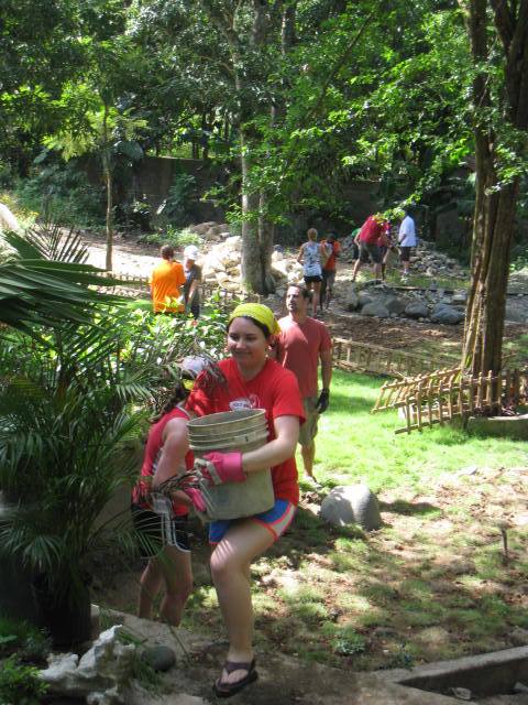 rocksThis was another work day, and although I thought I was done with the manual labor part of the trip and could just stick to painting, God had other plans. After breakfast the whole team was called together to help haul rocks up the hill. Now these weren’t little pebbles or hand sized stones, these were big, heavy, rocks. We could only fit two, or maybe three in a large bucket to pass down the line. After several buckets, your arms got tired, and your back might get stiff if you happened to be someone on the stairs, or a steeper part of the hill. But it wasn’t tiring work, because we were working as a team. We helped each other and sent messages of encouragement down the line, along with the rocks. Even my little painting helper and her cousins wanted to be part of the work, so they jumped in the line and tried to help carry rocks too. Like I said, the lessons I had learned already were being reinforced. God has placed us in a body, and with everyone working together, a lot can be achieved.