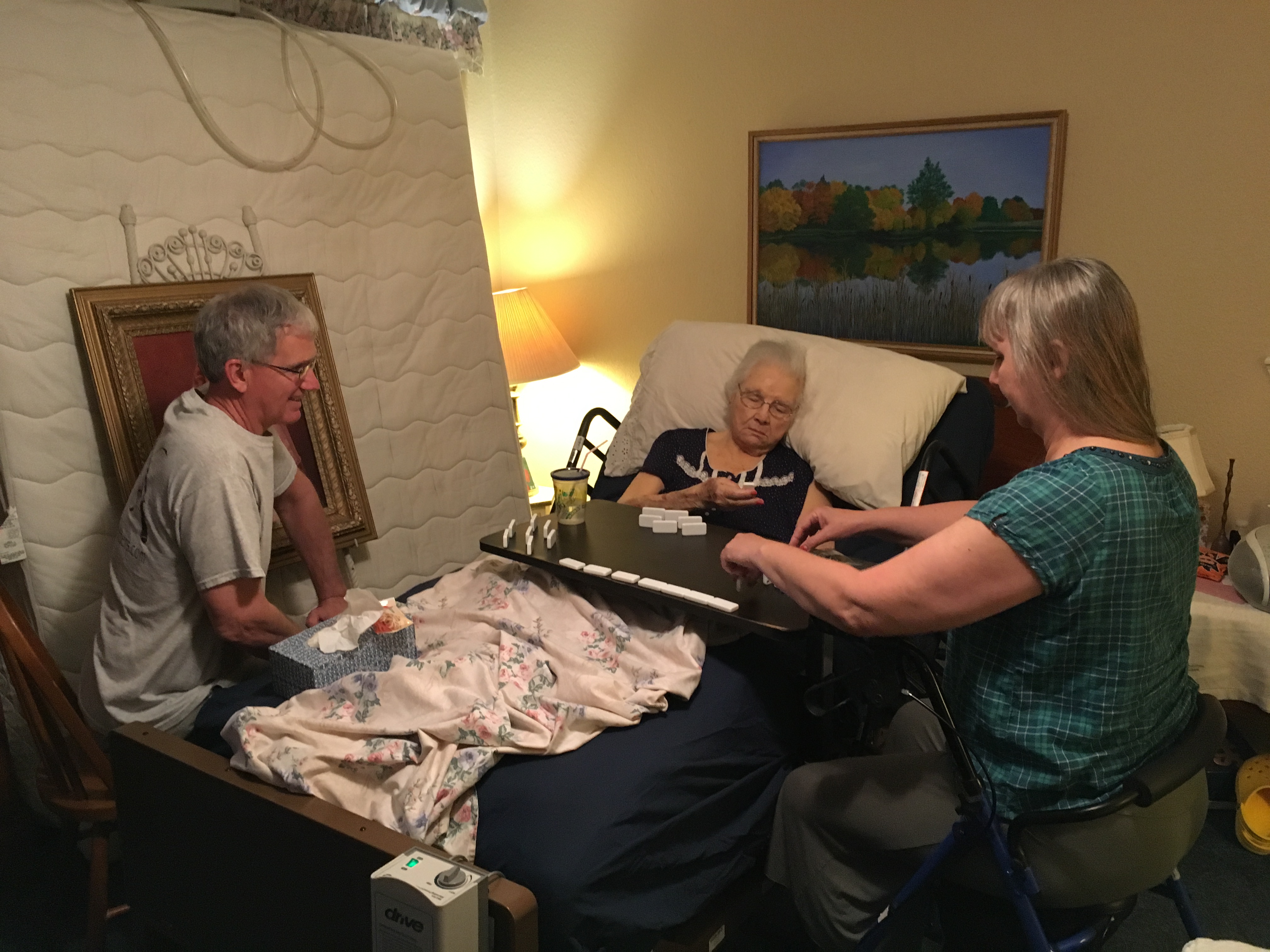 Since then we’ve learned all about caring for her while she’s in a bed, how to help her sit up and move around and get changed. And hospice has been great with helping us through that. But in only a week I’ve seen her go from a bit of conversation, eating, drinking and even playing dominoes, to barely responding to our voices and mostly sleeping. We’re getting close to the end now. Last night our nurse came to check on her and she said it’ll be about a week.